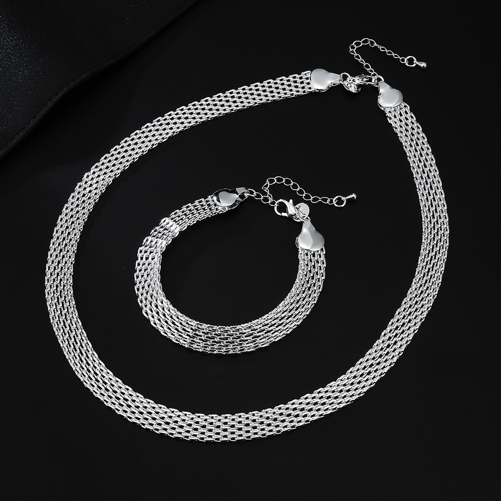 925 Sterling Silver Creativity Net chain Bracelets necklaces for women fashion designer party wedding jewelry sets gift Necklace Bracelet – Sumsfashion