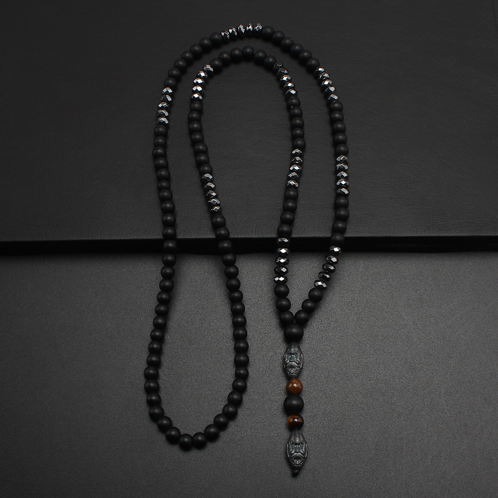We're taking a close look at the Black Obsidian Round Beads Hematite Old Man Head Pendant Y Necklace. This isn't understated jewelry; it's a bold statement. Below are answers to the questions I wish I'd had before making my purchase.